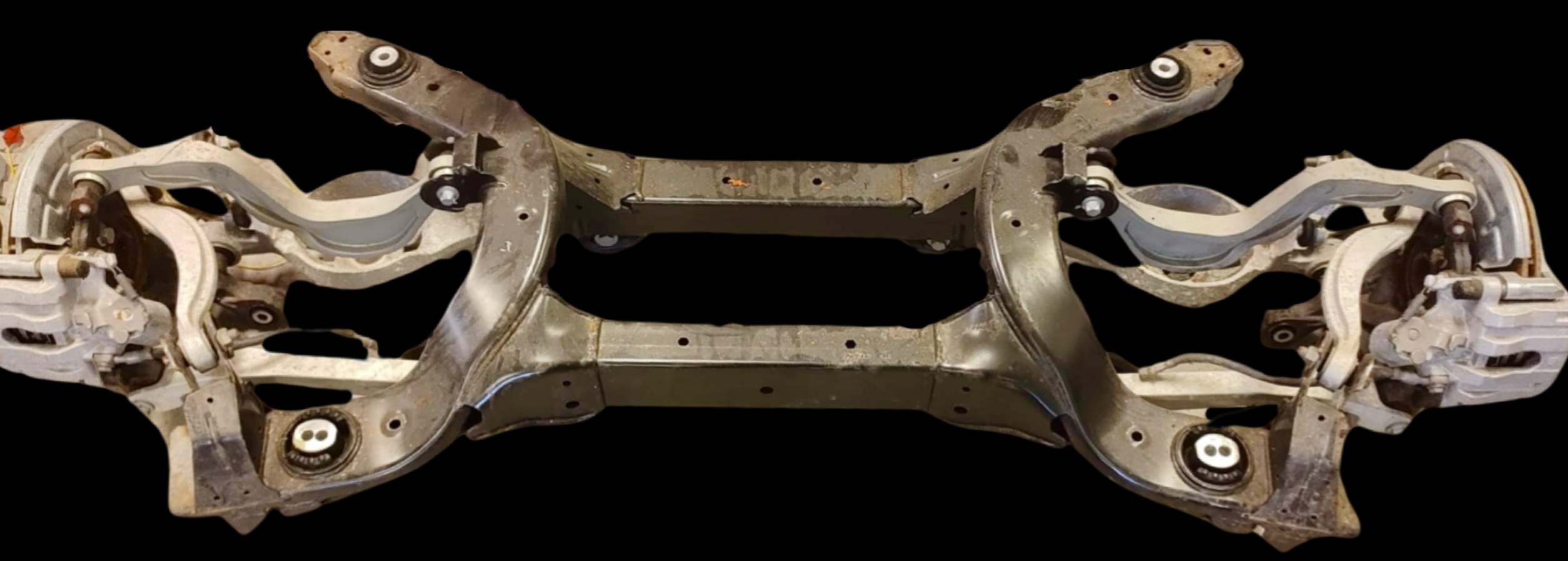 The suspension is also built in such a way that the whole suspension is mounted to a highly rigid subframe, meaning that all uneveness from the road is transferred to the vehicle body, only through 4 bushings . These bushings can then be optimized to reduce road NVH and to improve vehicle dynamics.